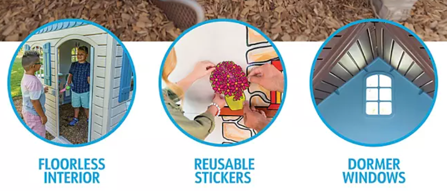 The Imagination Playhouse is a perfect space for your kids to call their own. This playhouse allows children to make their own rules and decide where the furniture goes with reusable stickers. They can place a chair, a table, a fireplace, or a bookshelf exactly where they want it. This encourages creativity and allows your child's imagination to run wild as they accessorize their place to their liking.