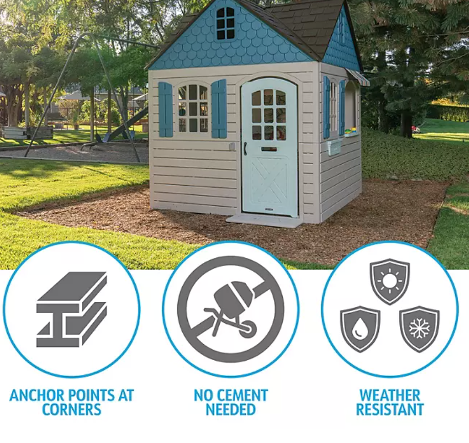- 72.9" x 72.9" x 84.4" HDPE playhouse