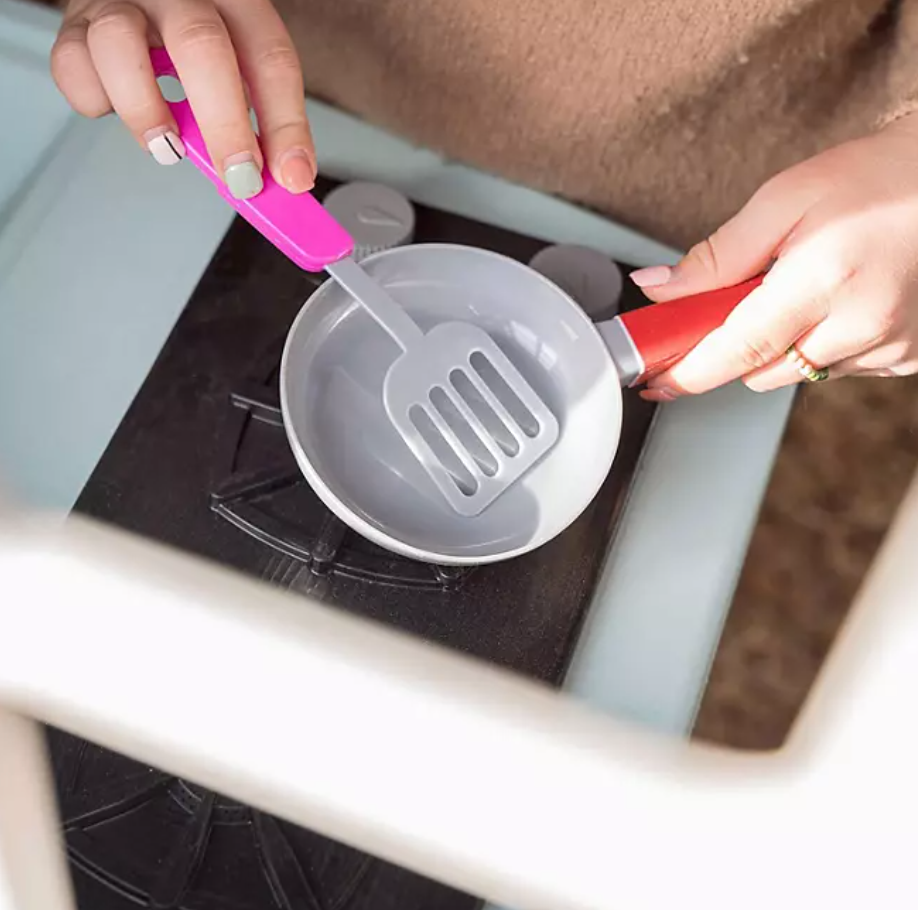 Included: Playhouse, reusable stickers, doorbell, windows & shelves, sink wit play food and